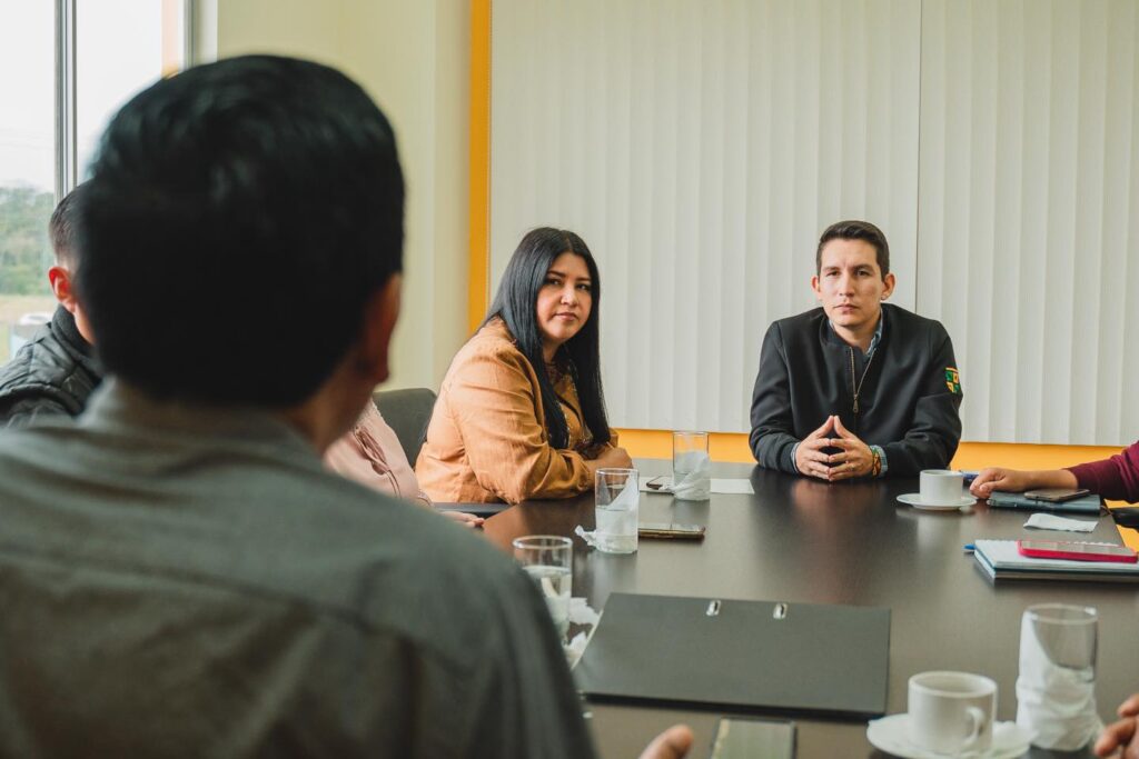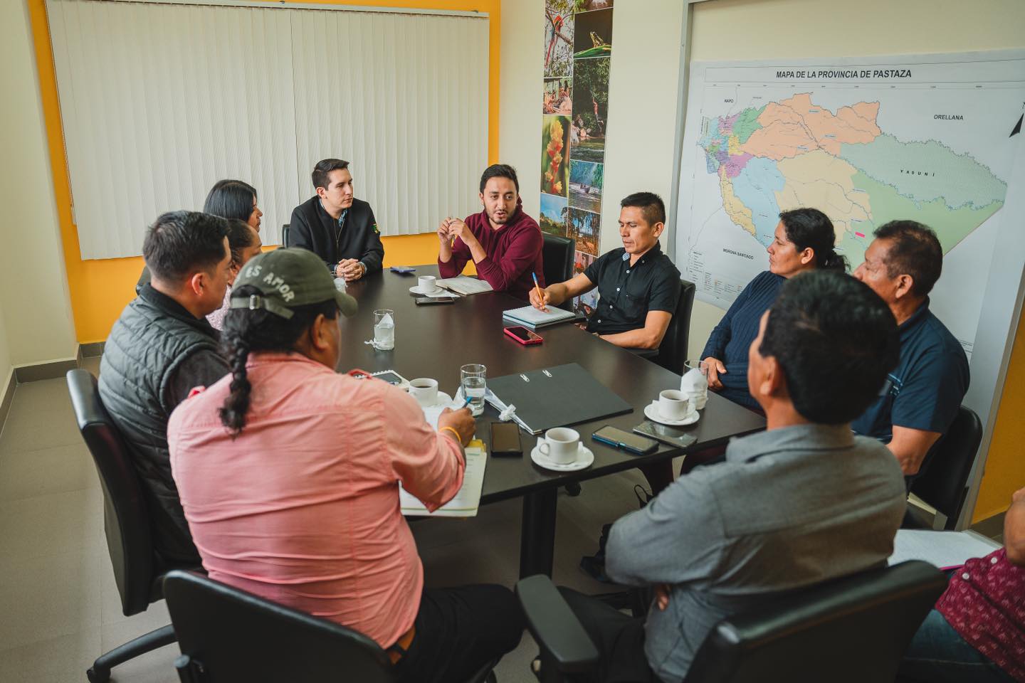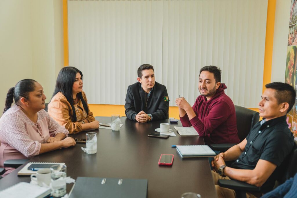 El Prefecto André Granda se reunió con Silvia Santi, Secretaria Técnica de la STCTEA y los dirigentes de las comunidades que están en la vía el Triunfo – Villano-Paparawa, para analizar el proceso de contratación de asfaltado de 10 kilómetros de la vía, desde la comunidad Ilipi – Yanapuma.