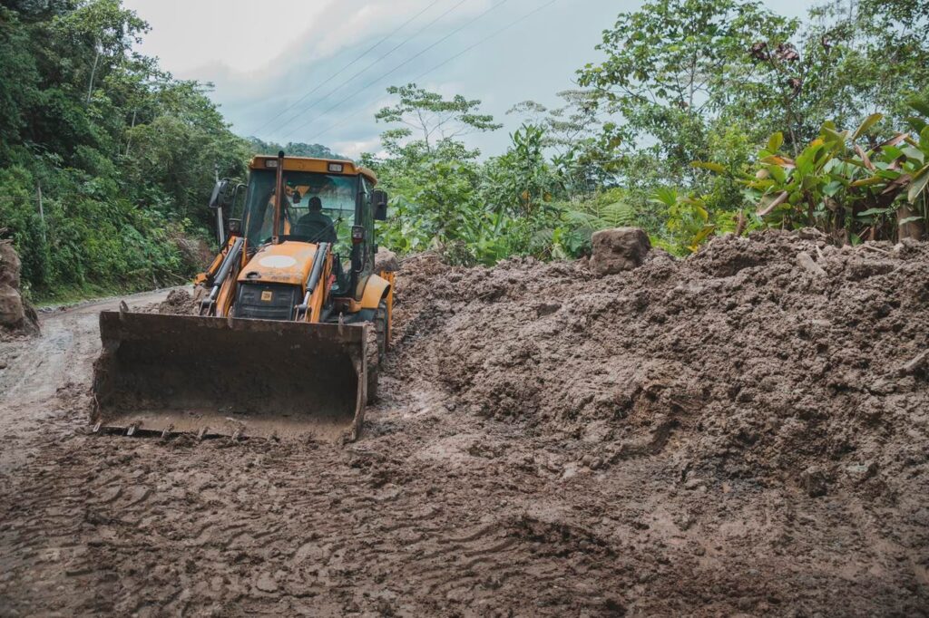del paso vehicular en la vía Villano-Paparawa, en el km 22 (afectada por el deslizamiento de material lodoso). Al momento, la circulación está parcialmente habilitada; se pide transitar con precaución por la zona![]()