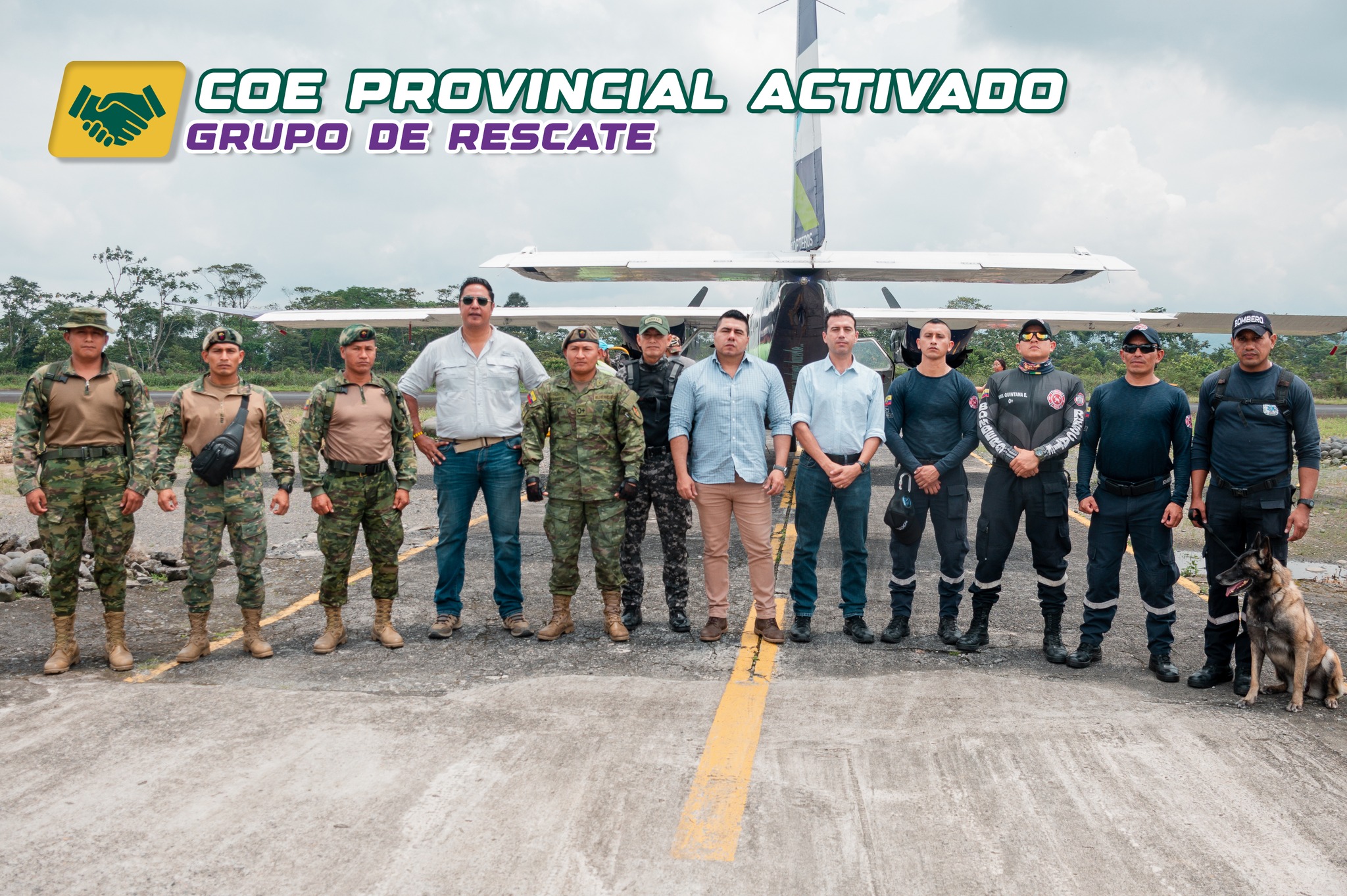 👨‍🚒 El equipo del Cuerpo de Bomberos Municipal del Cantón Pastaza y el valiente perro de búsqueda, Akira, junto a personal militar y de la Policía Nacional coordinado por Gobernación, ya están en el corazón de la selva realizando la respectiva búsqueda de los ciudadanos.