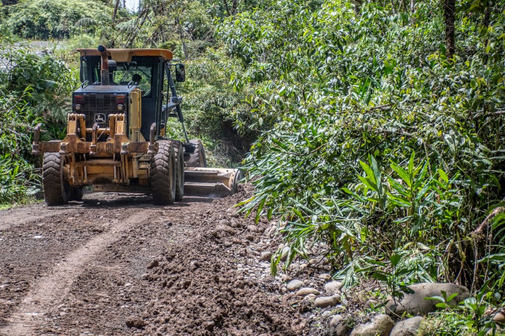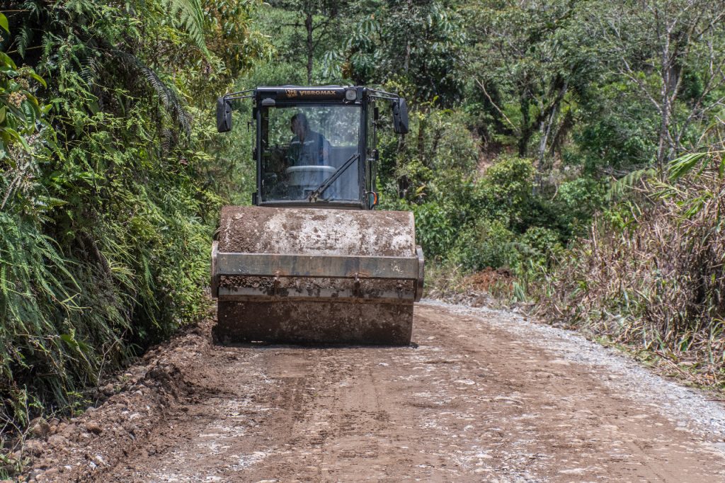 El prefecto, Jaime Guevara realizó un recorrido por esta vía, constatando el avance del trabajo que realizan: volquetes, excavadora, motoniveladora, rodillo y trabajadores de la institución.