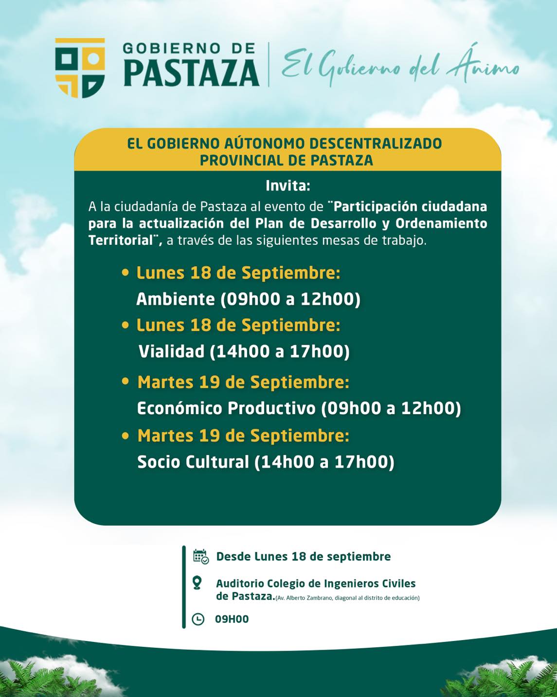 Los insumos de la opinión ciudadana que salgan de estas mesas de trabajo, serán parte de la actualización del Plan de Ordenamiento Territorial de la provincia de Pastaza.✊